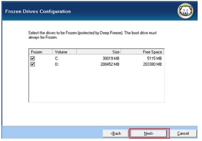 Bước 6: Chọn ổ cứng mà bạn muốn thực hiện đóng băng, sau đó nhấp chọn ‘Next’ để tiếp tục