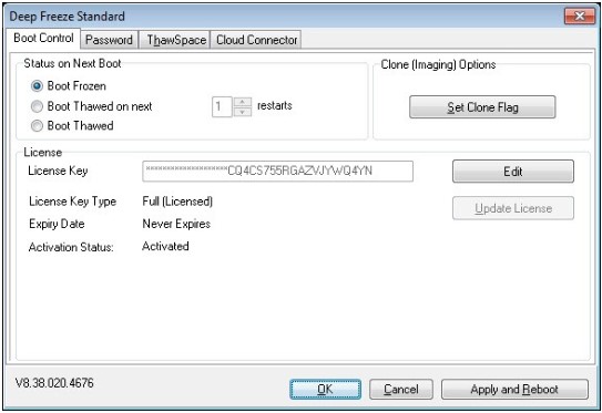 Boot Thawed: Hủy chế độ đóng băng sau khi máy tính đươc khởi động lại.